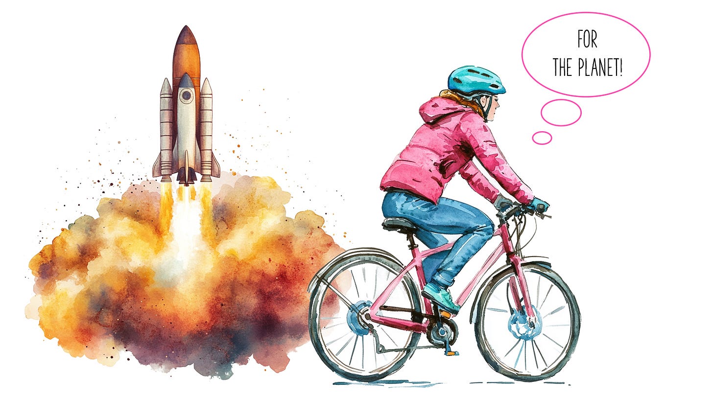 Meanwhile, here on Earth, I’m calculating whether the carbon offset of riding my bike at 6:30 in the morning with wet hair and bone-chilling wind in my face was a better idea than driving 8 minutes in my gas-powered Subaru.